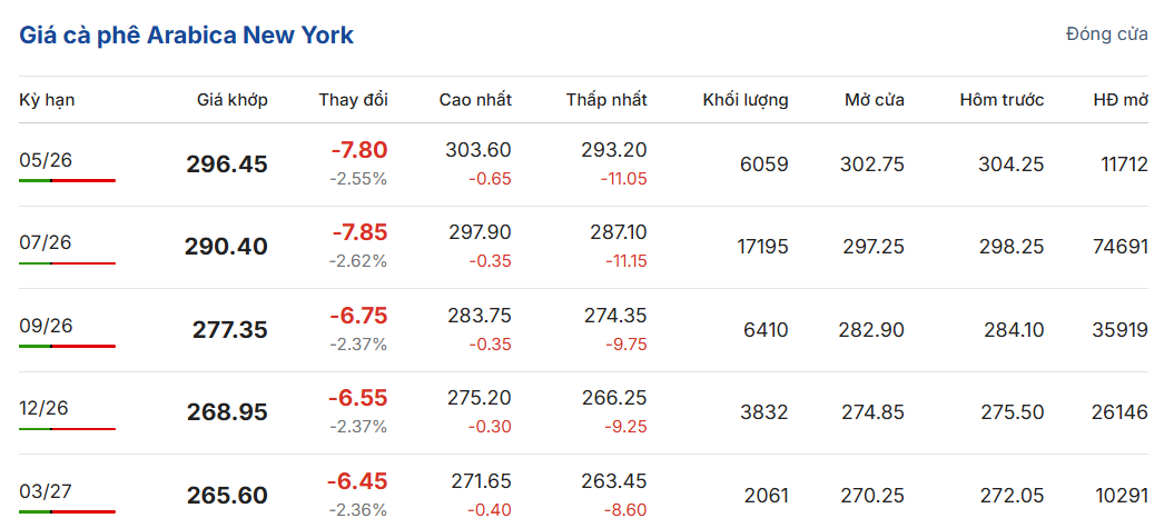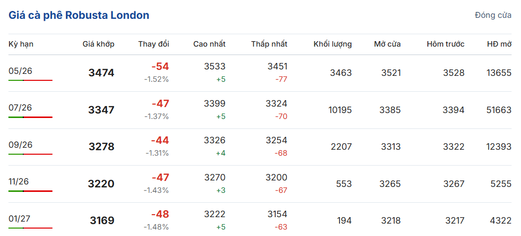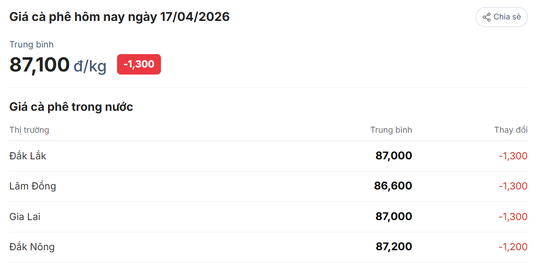 Giá cà phê tại các vùng trồng trọng điểm ngày 17/4/2026