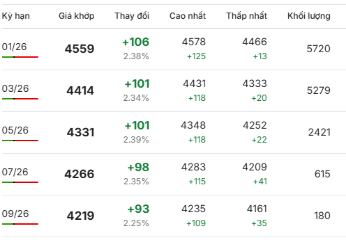 Tại sàn giao dịch London, giá cà phê robusta giao tháng 01/2026 tăng 106 USD/tấn, lên mức 4559 USD/tấn; giá cà phê giao tháng 03/2026 tăng 101 USD/tấn, lên mức 4414 USD/tấn; giá cà phê giao tháng 05/2026 tăng 101 USD/tấn, lên mức 4331 USD/tấn.